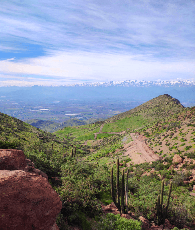 Vista a la cordillera de los Andes y al Valle de Aconcagua.